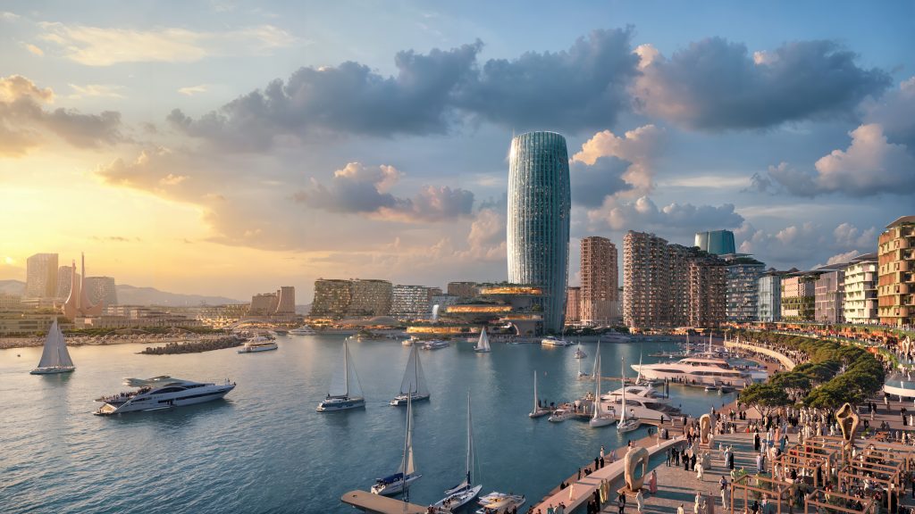 As one of three designated areas in Muscat for high-rise development, the project introduces a new vertical dimension through a transit-oriented development (TOD) approach. Its masterplan features a distinctive skyline of landmark towers alongside a major waterfront canal, forming a strong spatial and visual identity.