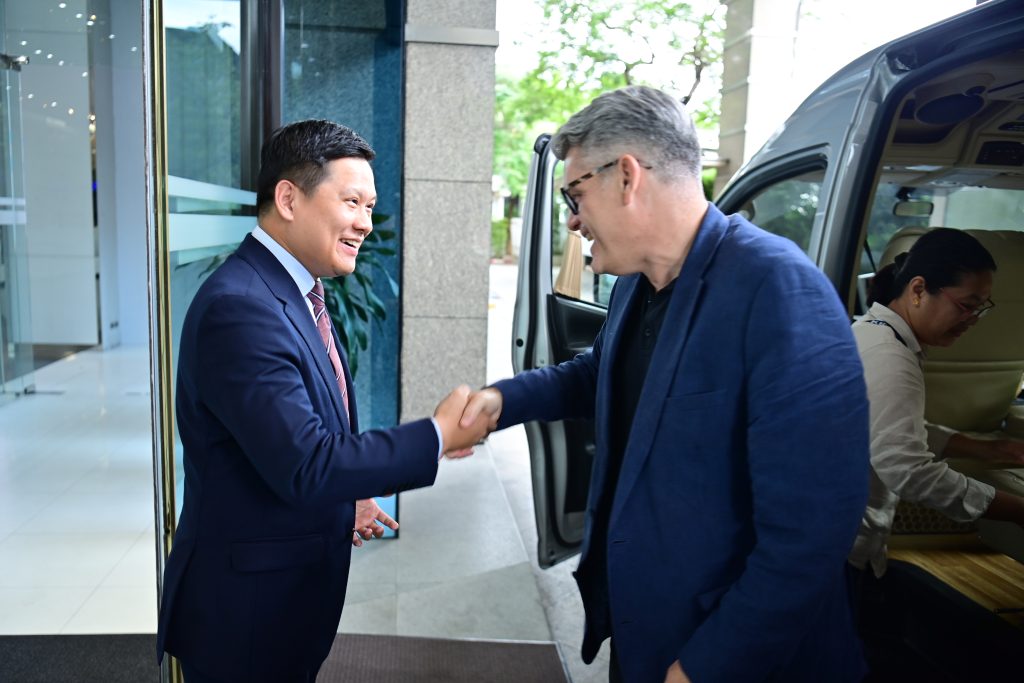 Participants were then invited to the headquarters of CP Group, one of Thailand’s largest and most influential conglomerates, with operations spanning agribusiness, retail, telecommunications, and real estate. There, a presentation was delivered by Mr. Weiwei Huang, Senior Vice President of China Strategic Development and Cooperation. The session concluded with an inspiring exchange with Mr. Boonchai Opas-Likit, Chairman for US, EU, and UK Business at CP Group.